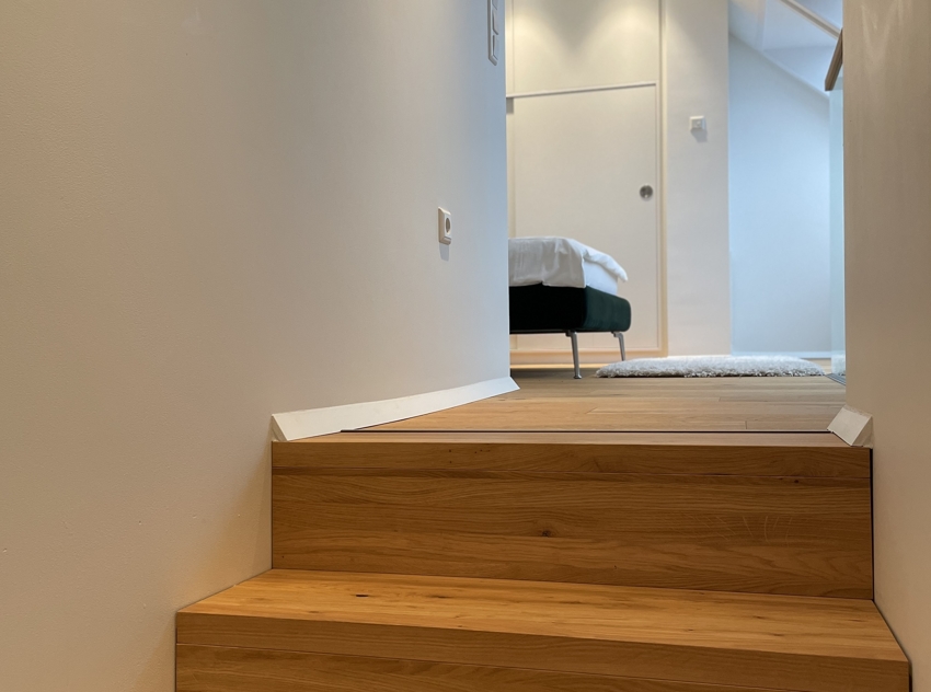 Luxusausstattung -vollendeter moderner Charakter im Industrial Style mit Großstadt-Flair: beispielsweise offene Galerie 4,5 Meter, Design-Betonboden mit Glitzereinschlüssen in Gold, kombiniert mit Eiche-Natur-Falz-Treppe zur Galerieebene, Betonsäule, individualisierter Raumteiler aus Industriestahl mit Eiche-Handlauf zur offenen Galerie für Schlafen /Arbeiten, Einbauschränke vom Schreiner. Die Fenster-Kombinationen sorgen für ein luftig-frisches Gefühl von draußen. Dreier-Kombi Dachflächenfenster mit elektr. Außenrollläden und die Panoramaverglasung (350 x 200 cm) mit Raffstores für individuelle Beschattung, Erlebnis-Dusche mit Metro Fliesen, Raindance & Lichttherapie, edler Design-Waschtisch -pflegeleicht- mit Aufsatzwaschtisch, Auszüge mit integrierter Steckdose. Videosprechanlage, Aufzug direkt vor die Wohnungseingangstür, unverbaubarer Blick in die Natur.