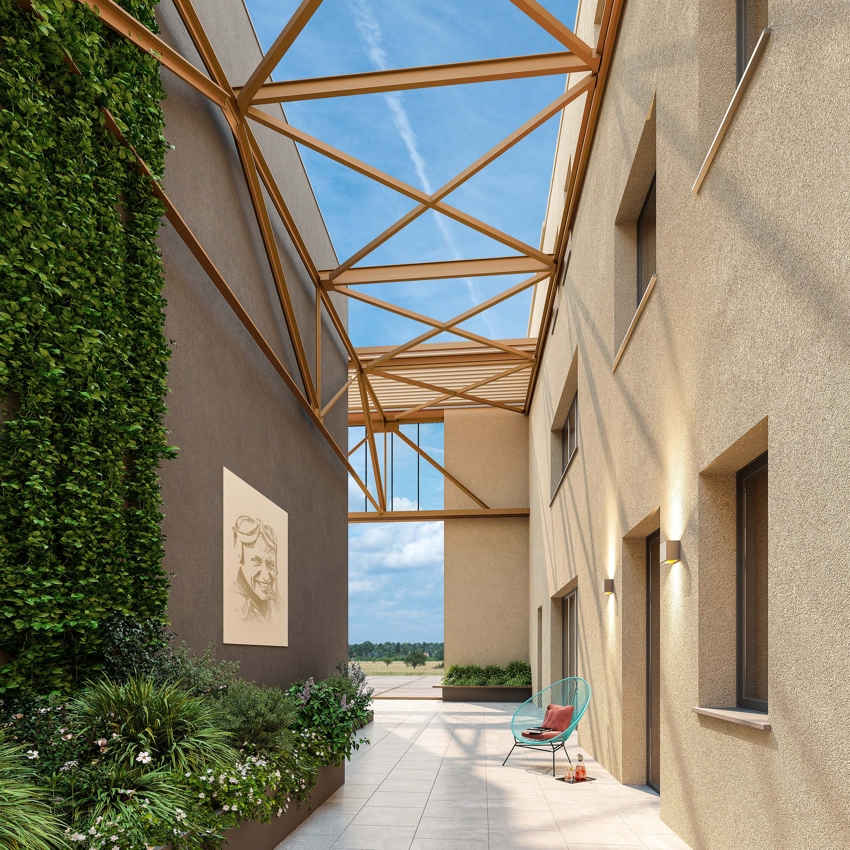 Das Projekt ist Teil der umfassenden Entwicklung des rund 1.000.000 m² großen BUC-36®-Geländes, einem der außergewöhnlichsten Konversions- und Stadtentwicklungsprojekte im Berliner Umland. Das kreisrunde, denkmalgeschützte Flugfeld bleibt dauerhaft unbebaut und bildet das grüne Zentrum des Quartiers, während historische Industriehallen und behutsam ergänzende Neubauten ein neues Wohn- und Lebensumfeld schaffen.